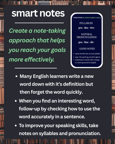 Word Power - Smart Notes Learning this week's word (PRODUCTIVE)